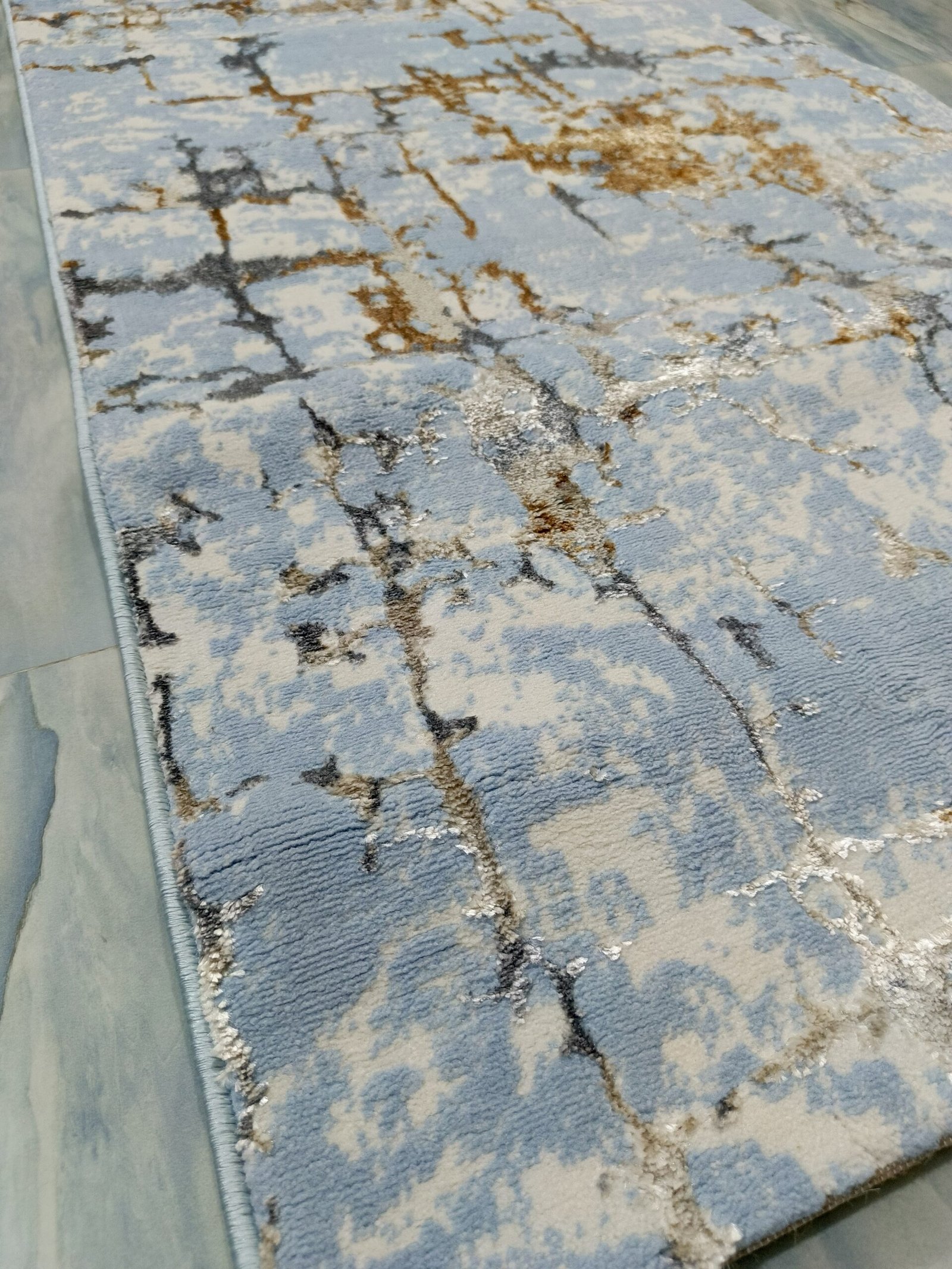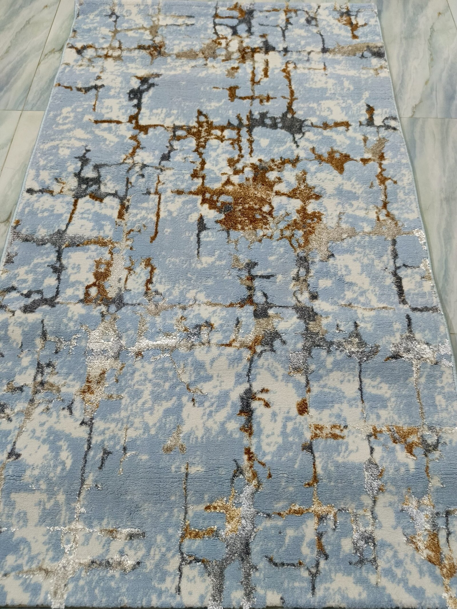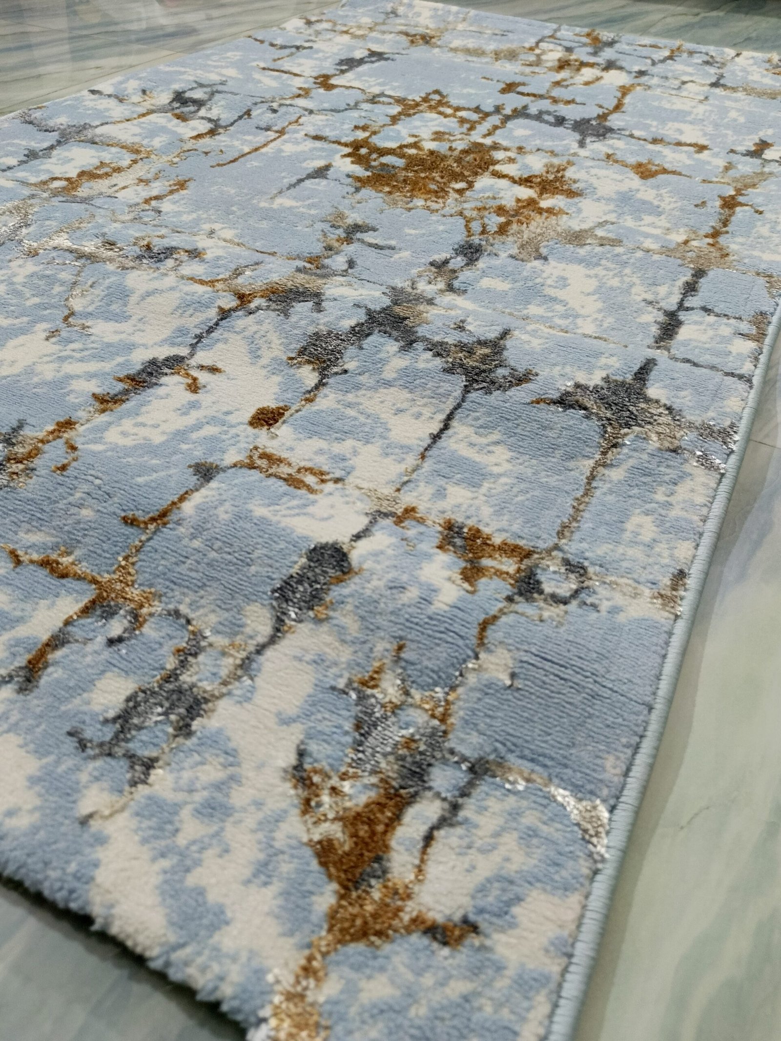 Infuse your room with elegance and texture using this stunning 3D Shiny Turkish Rug in a luxurious blue and gold abstract pattern. Crafted in Turkey with shimmering threads and a soft velvet-like surface, this 120×180 cm (4×6 ft) rug is perfect for modern interiors looking for an eye-catching statement piece.