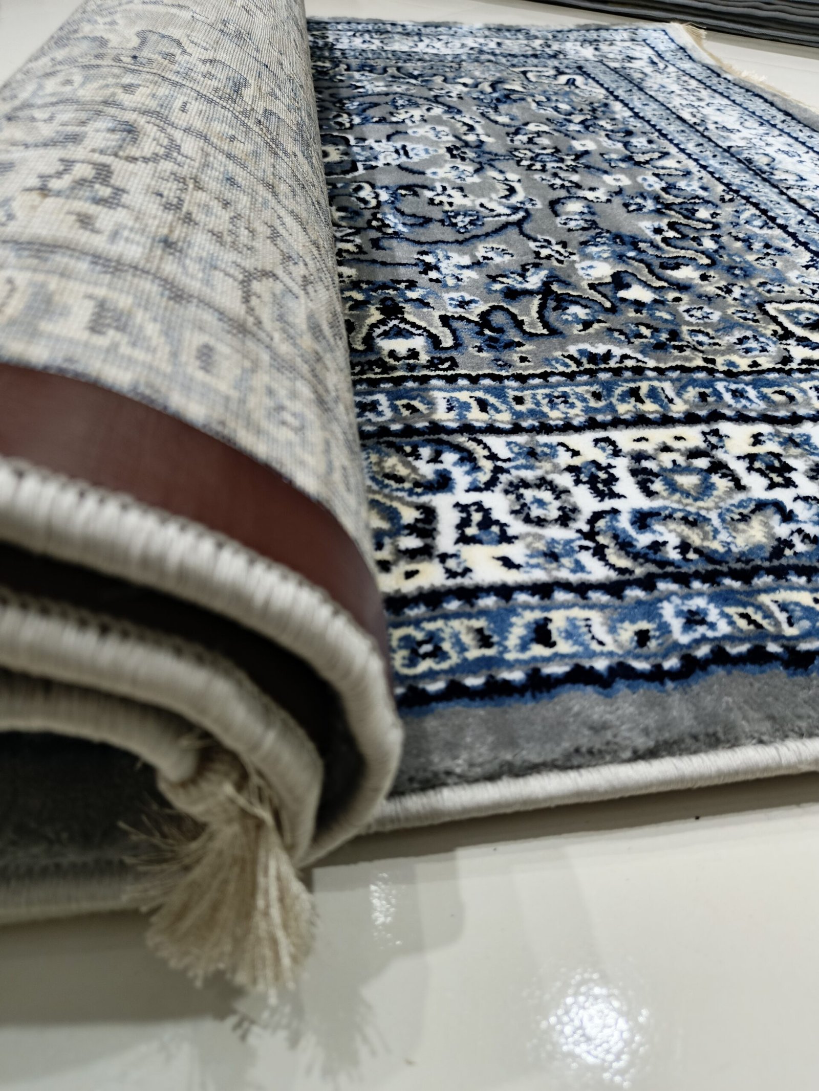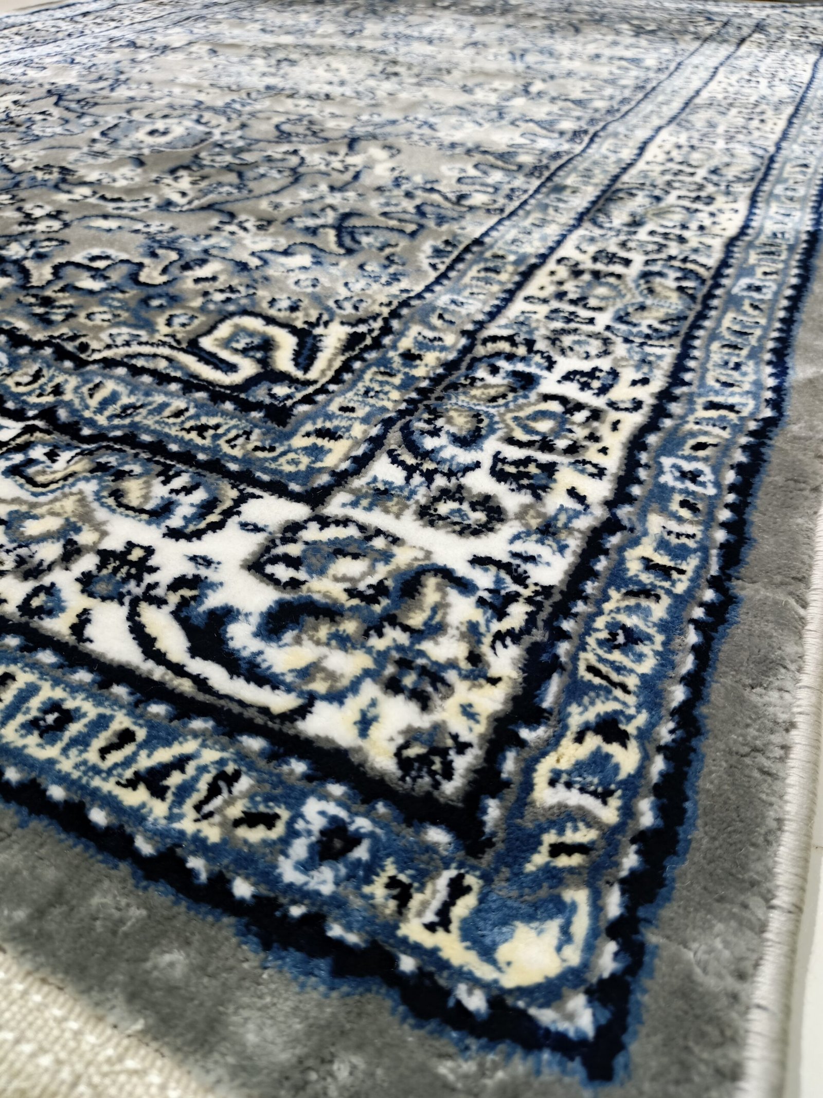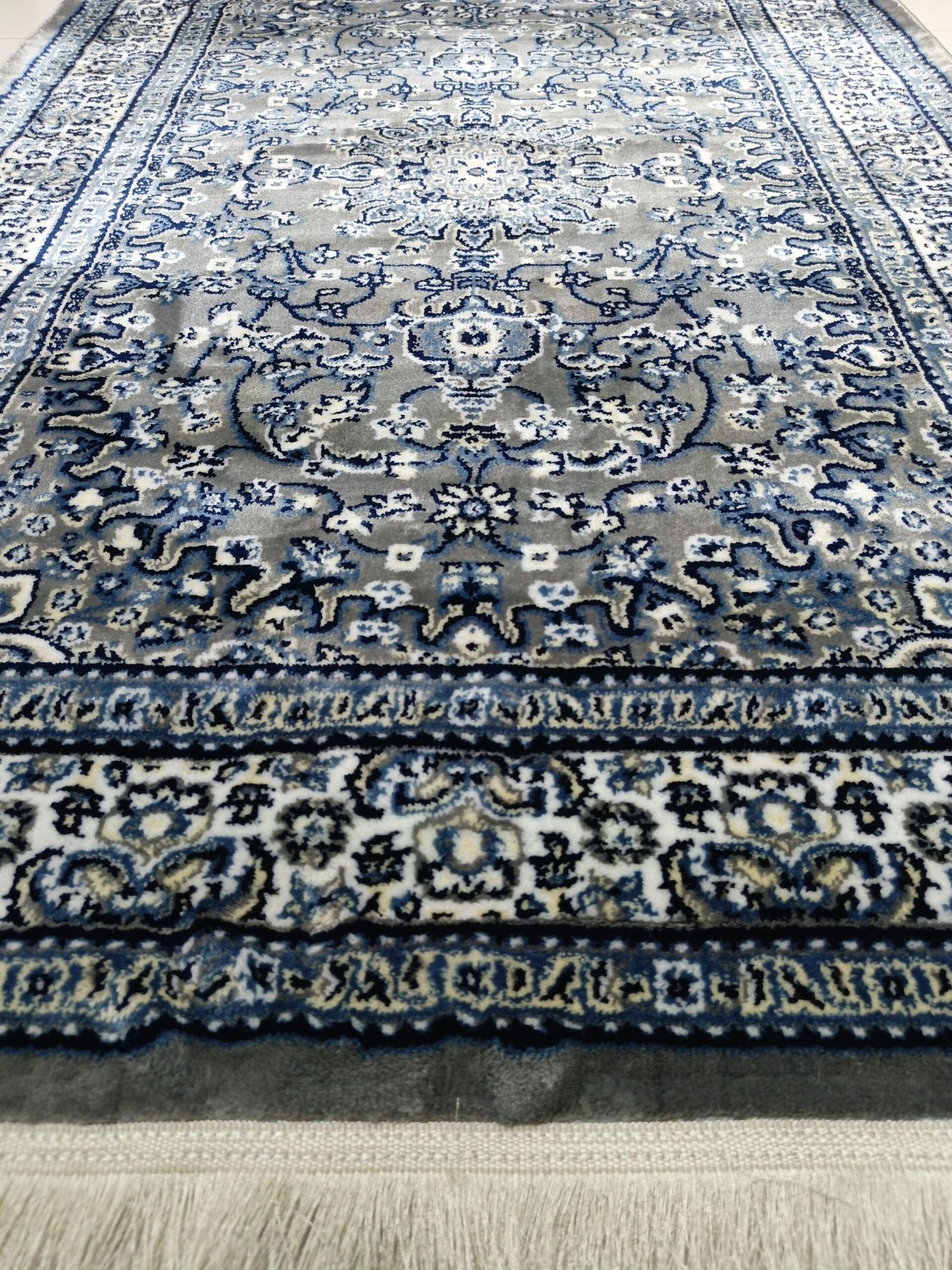 Bring timeless elegance into your home with our Silk Touch Traditional Persian Carpet, crafted in Turkey with luxurious detailing. Designed in deep dark gray with blue floral medallion patterns, this rug enhances both modern and classical interiors with a sophisticated aura. Its soft silk-like texture and durable finish ensure comfort, beauty, and long-lasting performance in your living space.