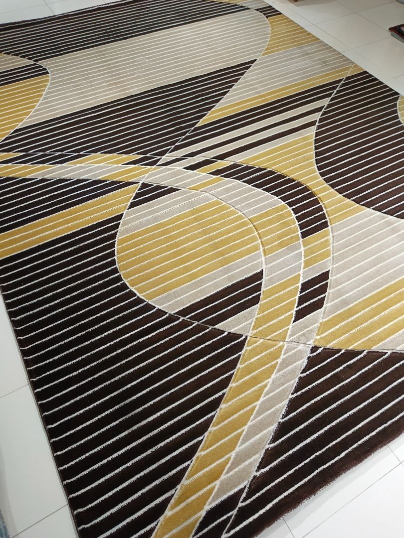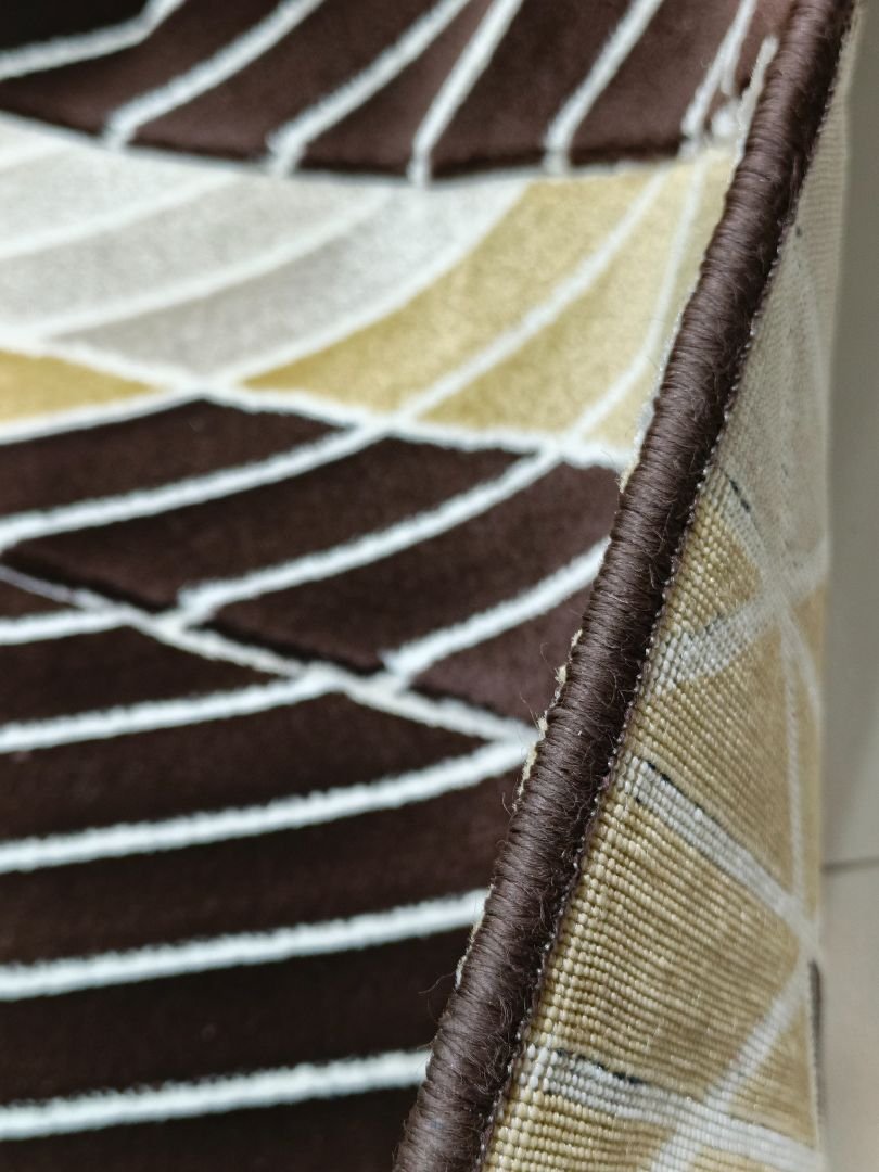 Golden Crossflow blends warm mustard, beige, and deep brown tones with intersecting curves and fine linear texture. The look is modern, balanced, and rich without being loud. This heavyweight rug is listed under our Bargain Bin due to visible stains on the back side only. Front design, thickness, and comfort remain fully intact.