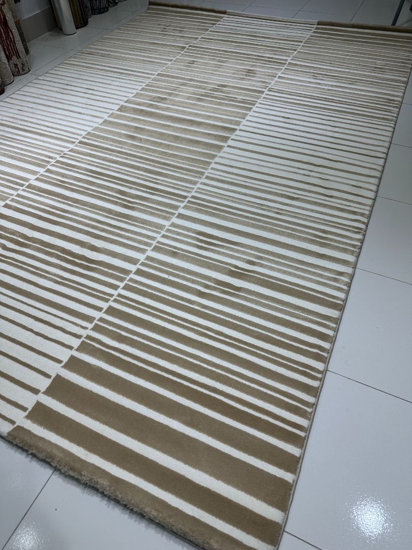 Clean lines. Calm tones. Serious comfort. Ivory Linear Crest is a heavyweight Turkish rug designed for modern homes that prefer subtle elegance over loud patterns.