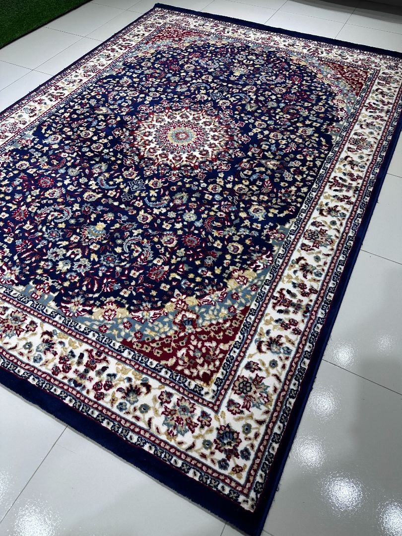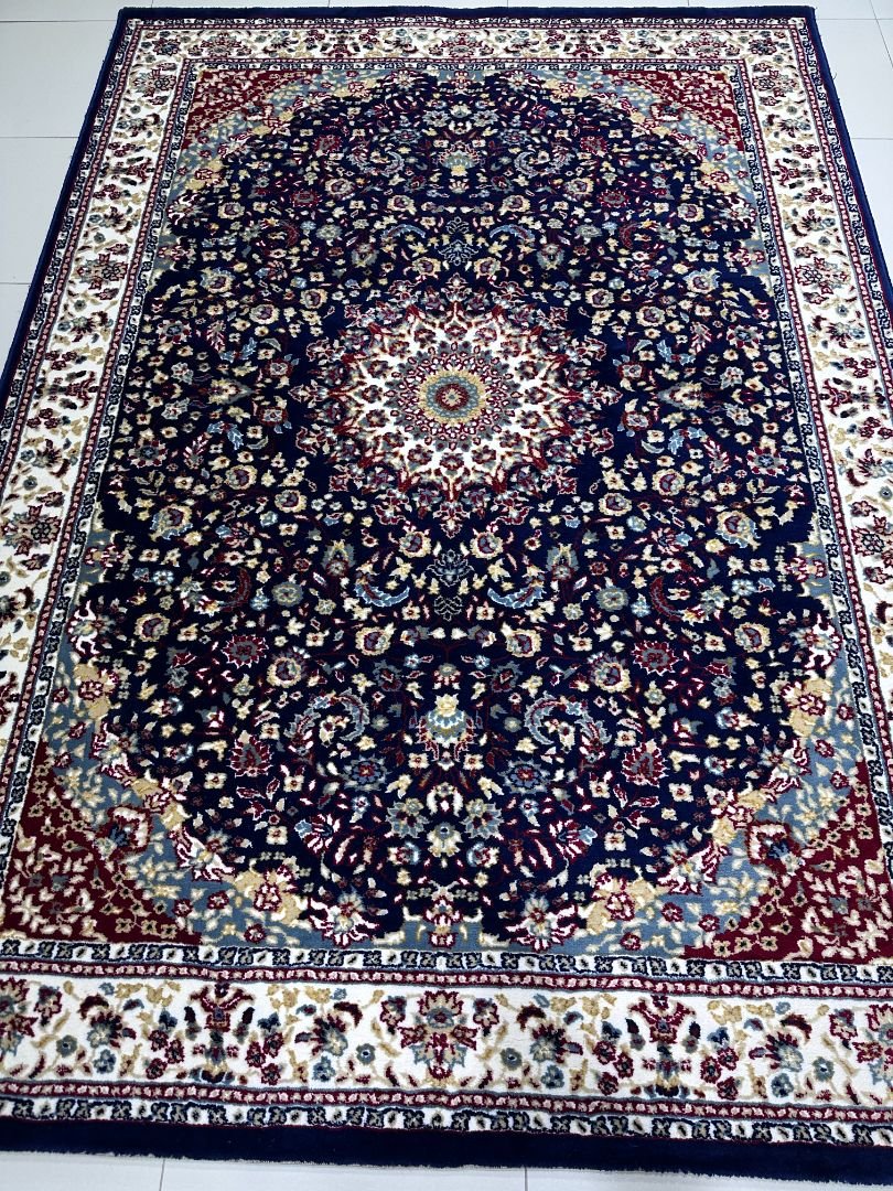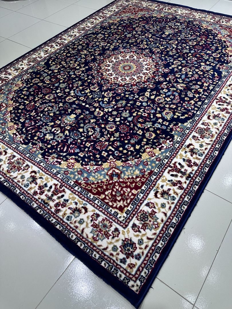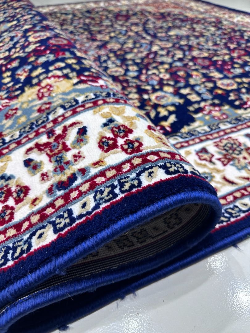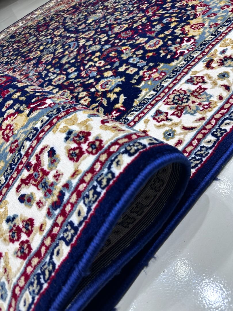 A rich navy blue medallion design inspired by classic Turkish patterns, crafted for timeless elegance.