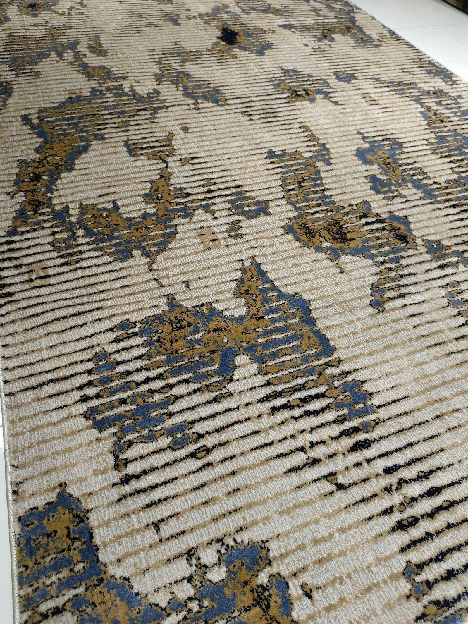 Bring timeless sophistication into your home with this Şehriyar Turkish Carpet. Crafted with Lora quality polypropylene heatset fibers, it offers a luxurious texture, medium-heavy weight, and long-lasting durability. The beige and navy blue abstract design creates a modern yet classic statement, suitable for both traditional and contemporary interiors.