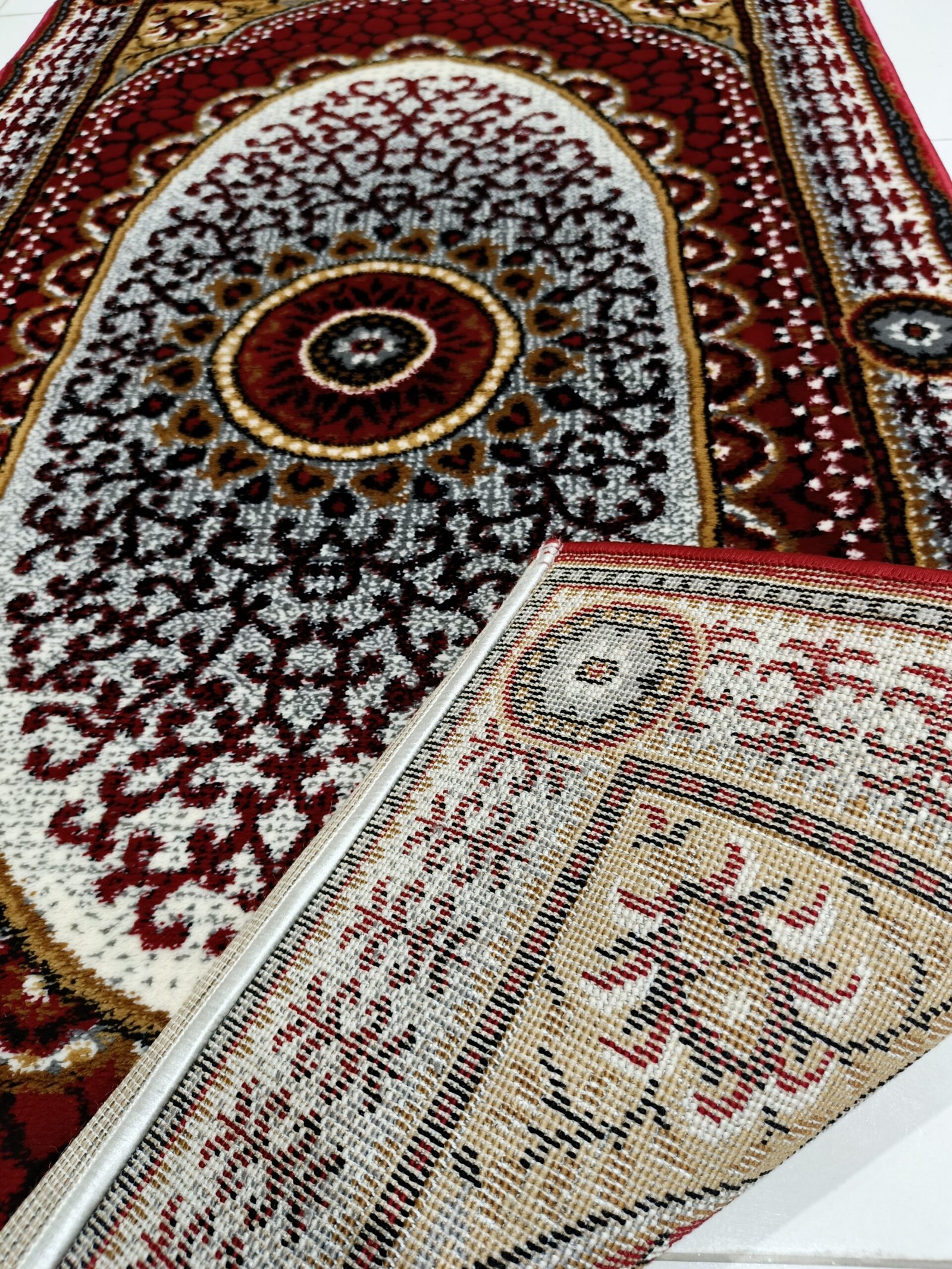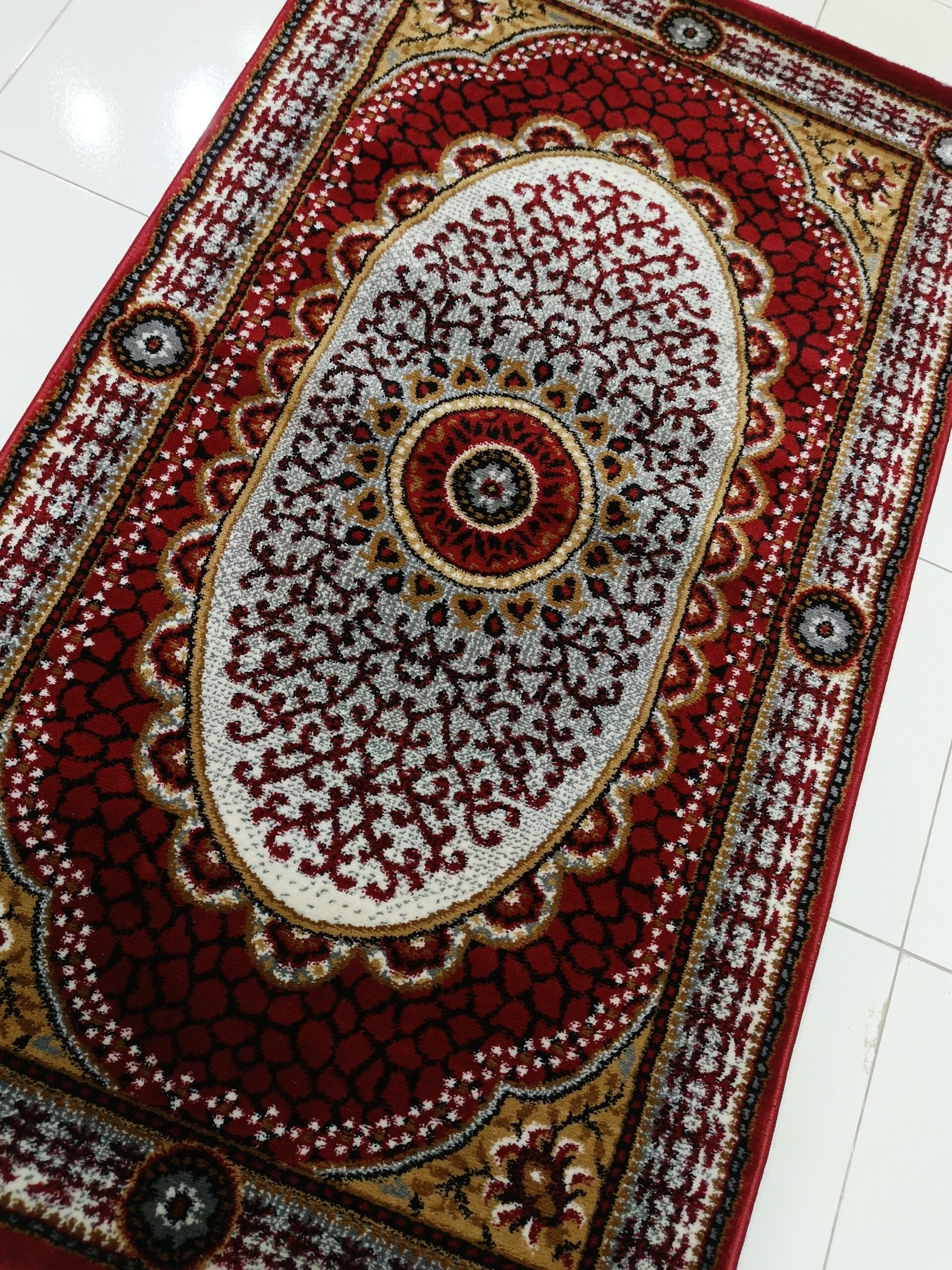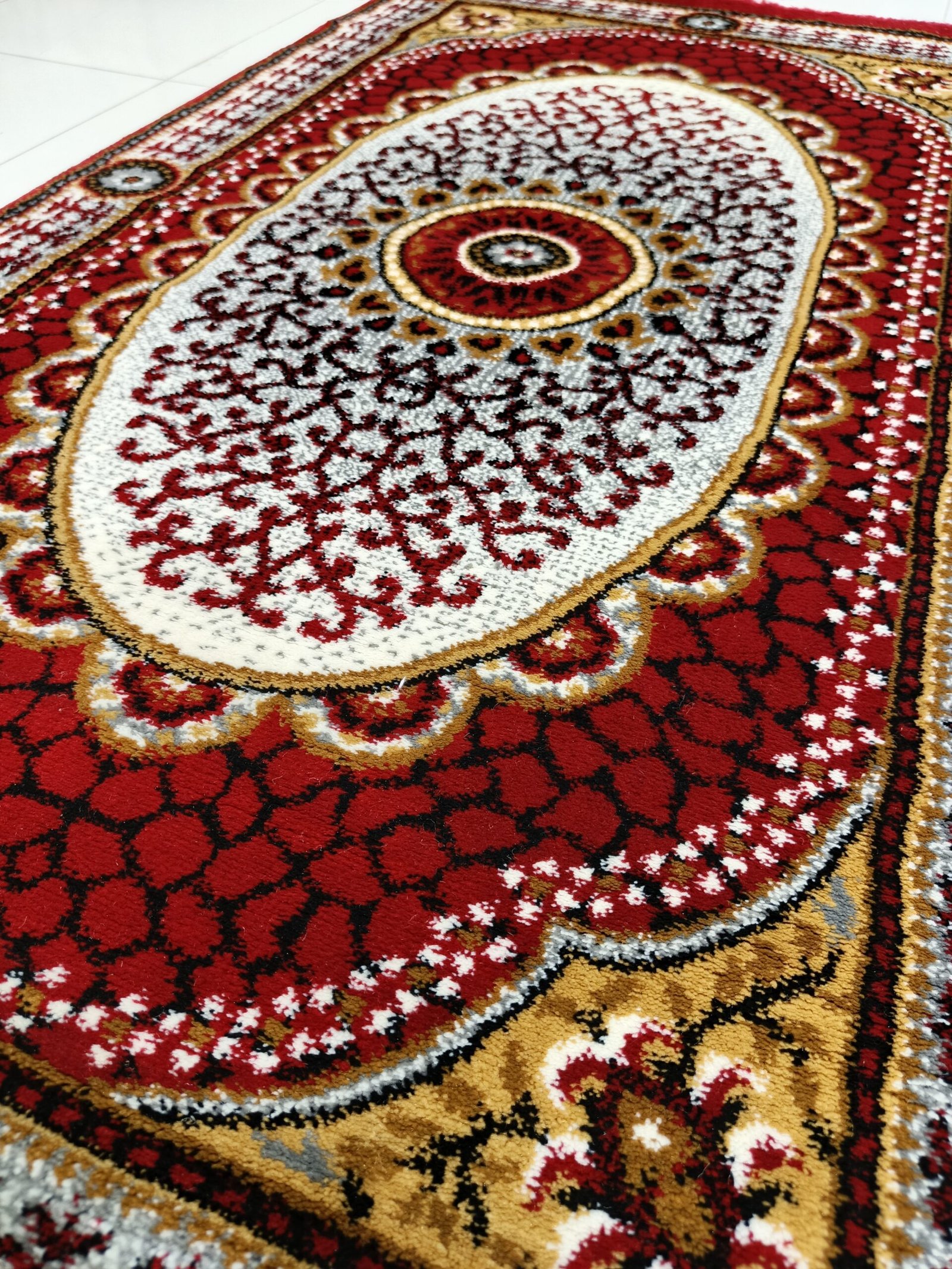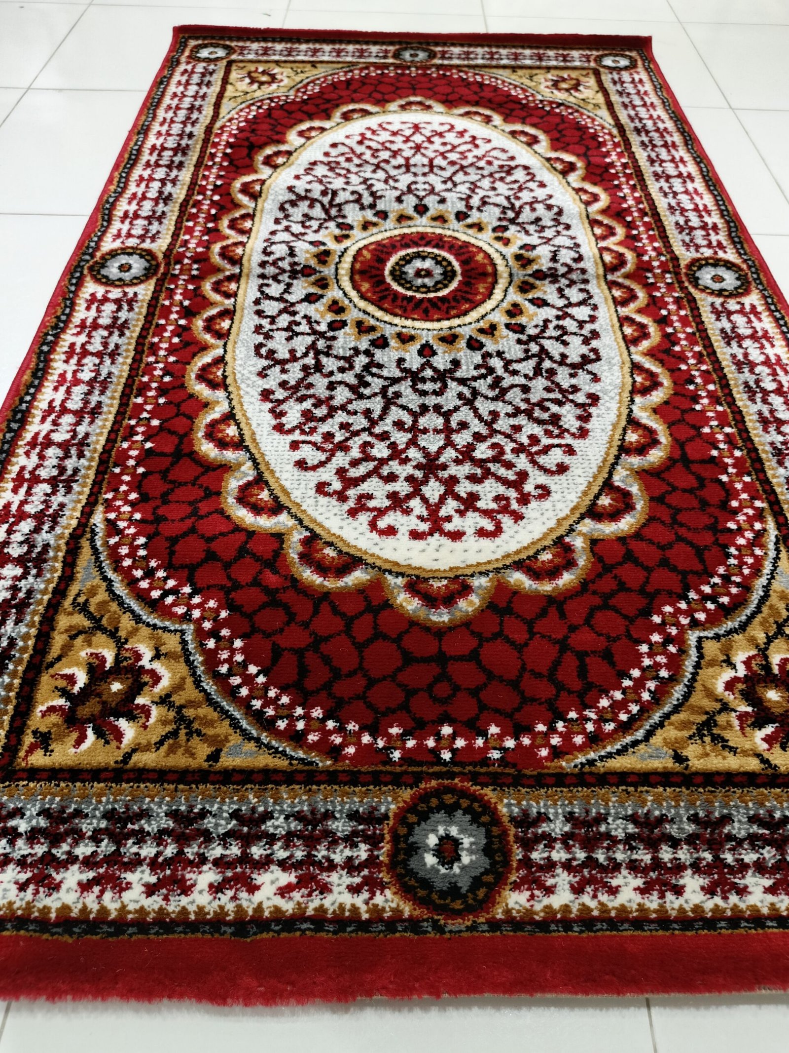 Design: Classic medallion with red, gold & ivory tones
