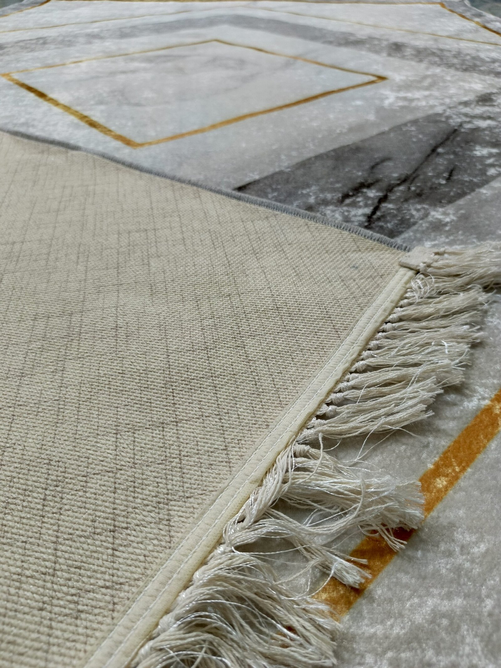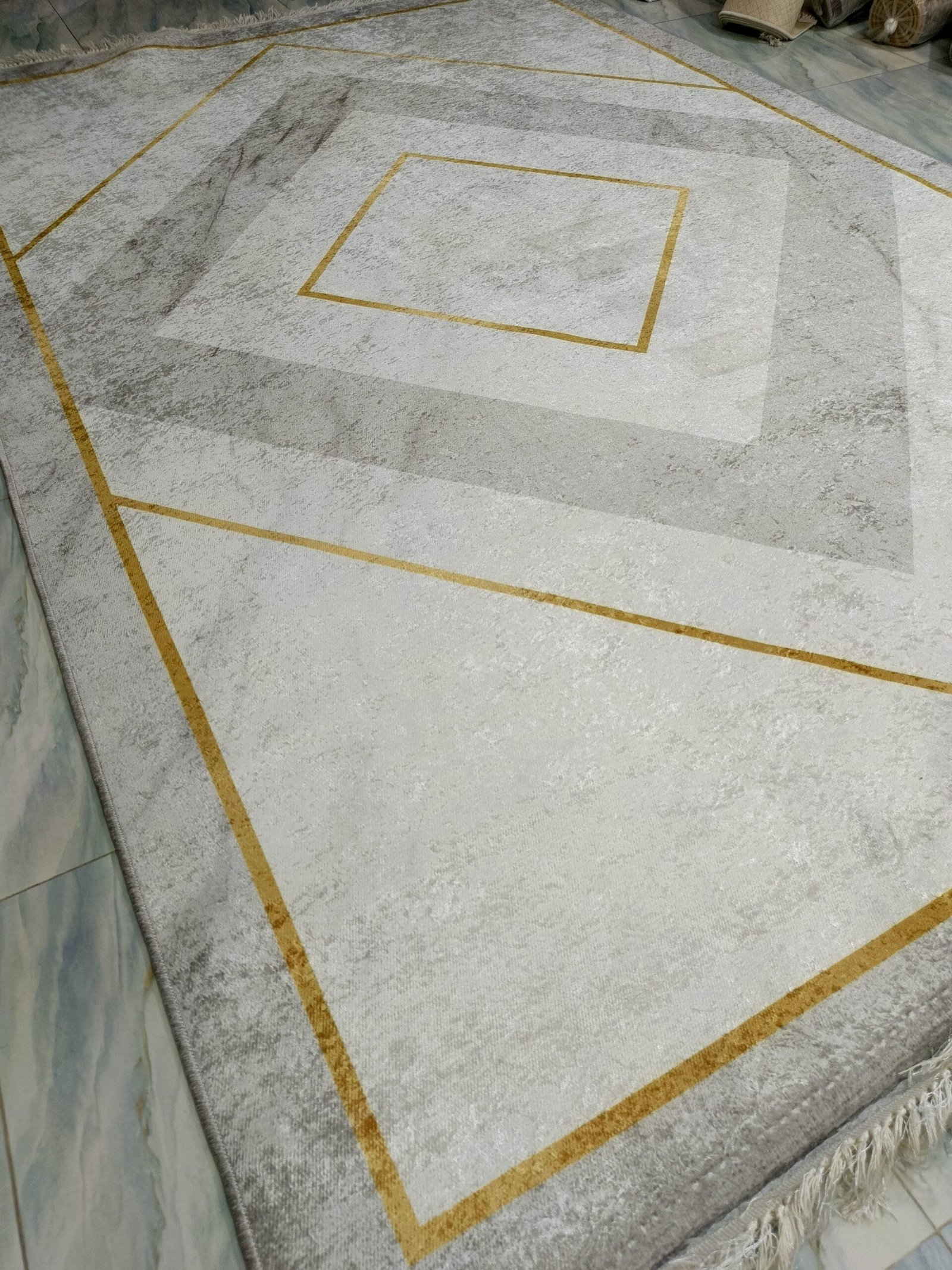 Step into luxury with our premium Turkish rug, blending heritage craftsmanship with modern design. The geometric pattern in soft grey and gold creates a tranquil, upscale atmosphere — whether you’re decorating your living room, master bedroom, or a cozy studio corner.