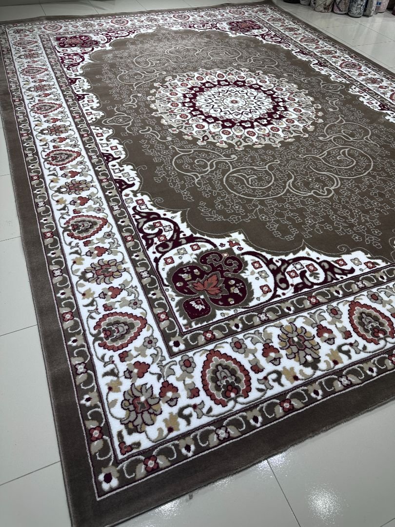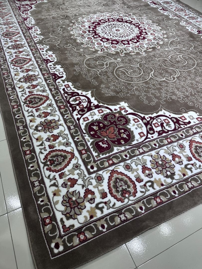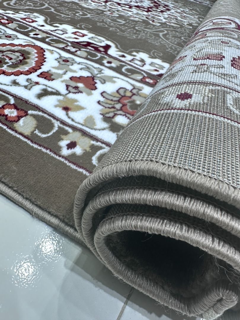The intricate floral patterns, layered borders, and balanced symmetry create a luxurious classic look that instantly elevates large living spaces. The warm combination of beige, ivory, and deep red accents gives the rug a rich traditional character while still blending beautifully with elegant interiors.