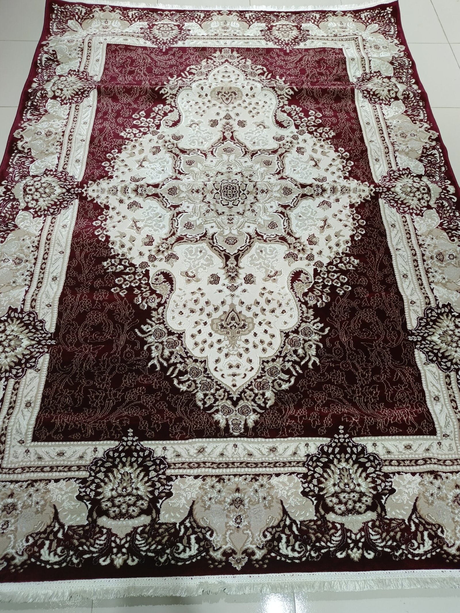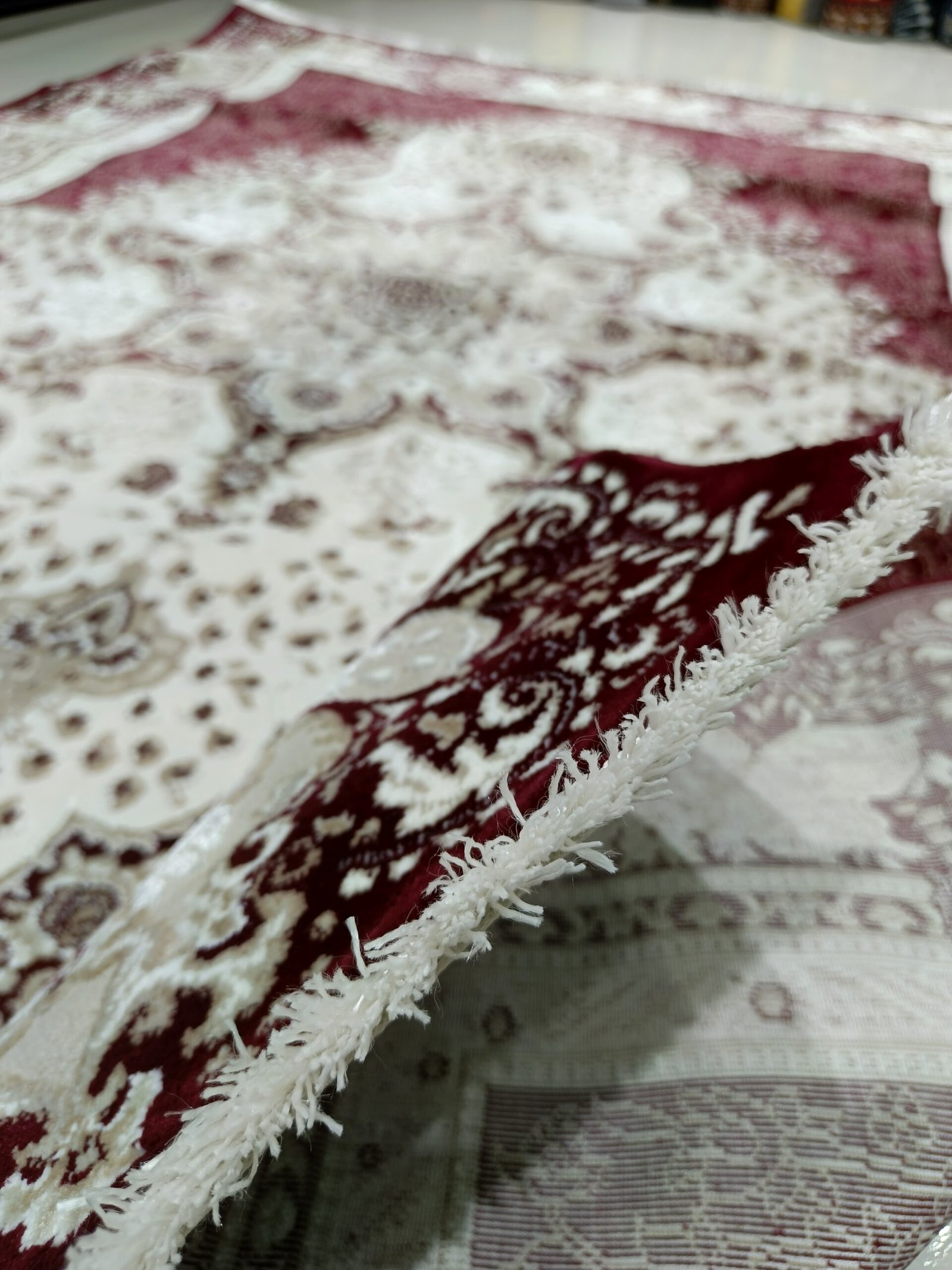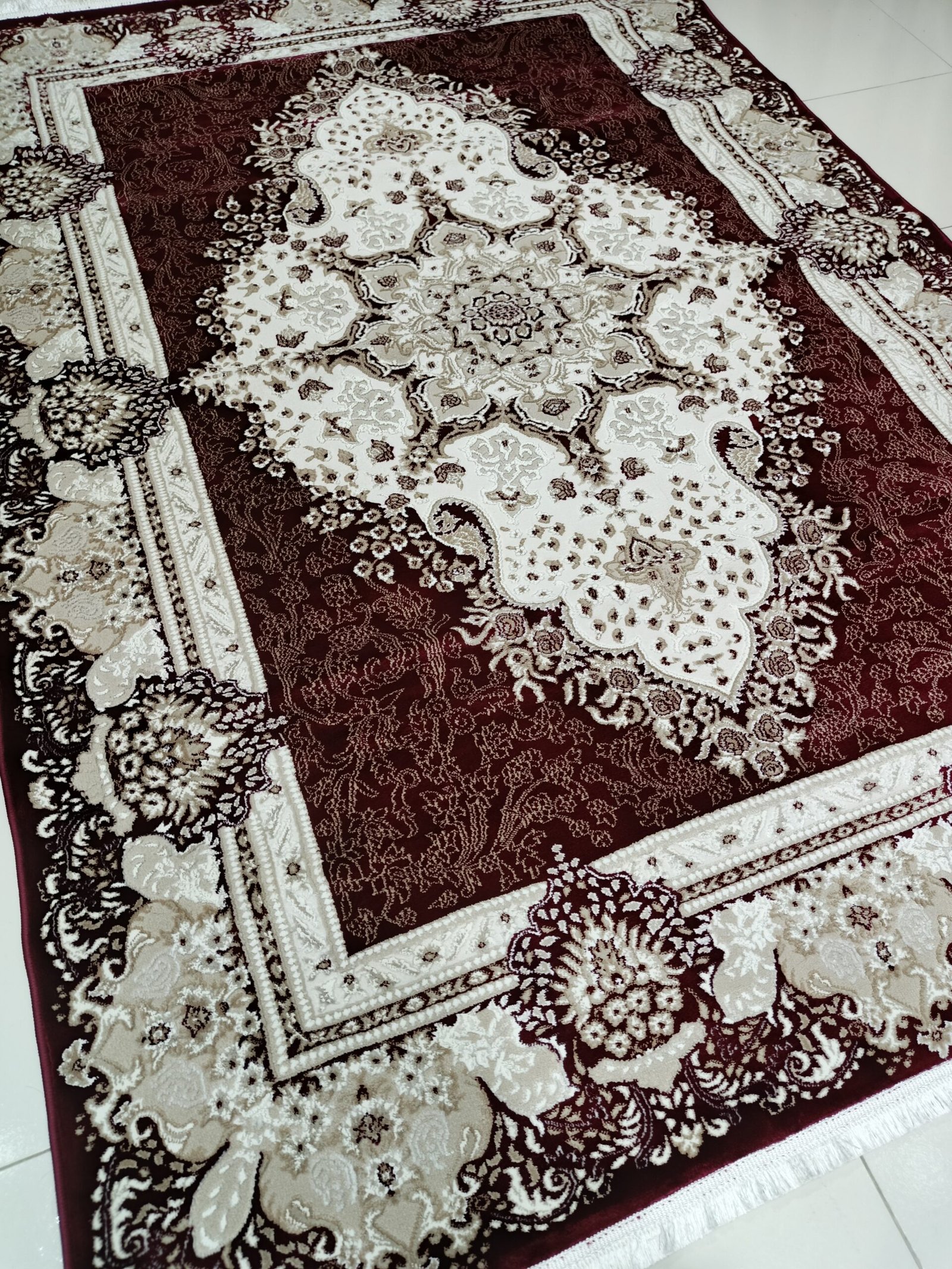Crafted in a bold ruby red base with elegant cream-beige medallion artistry, this premium-grade 5×7 ft carpet brings warmth, richness, and royal charm to any Bangladeshi home.