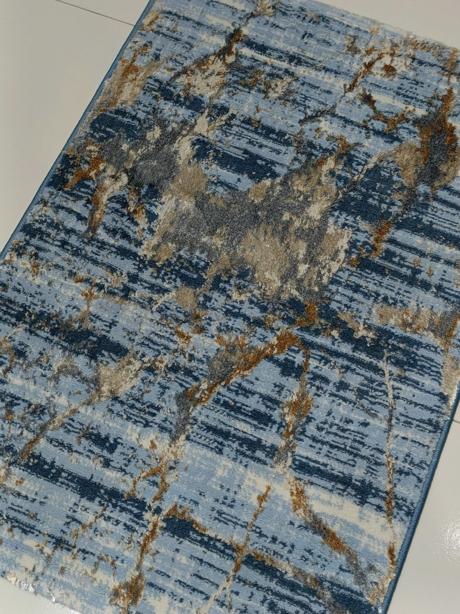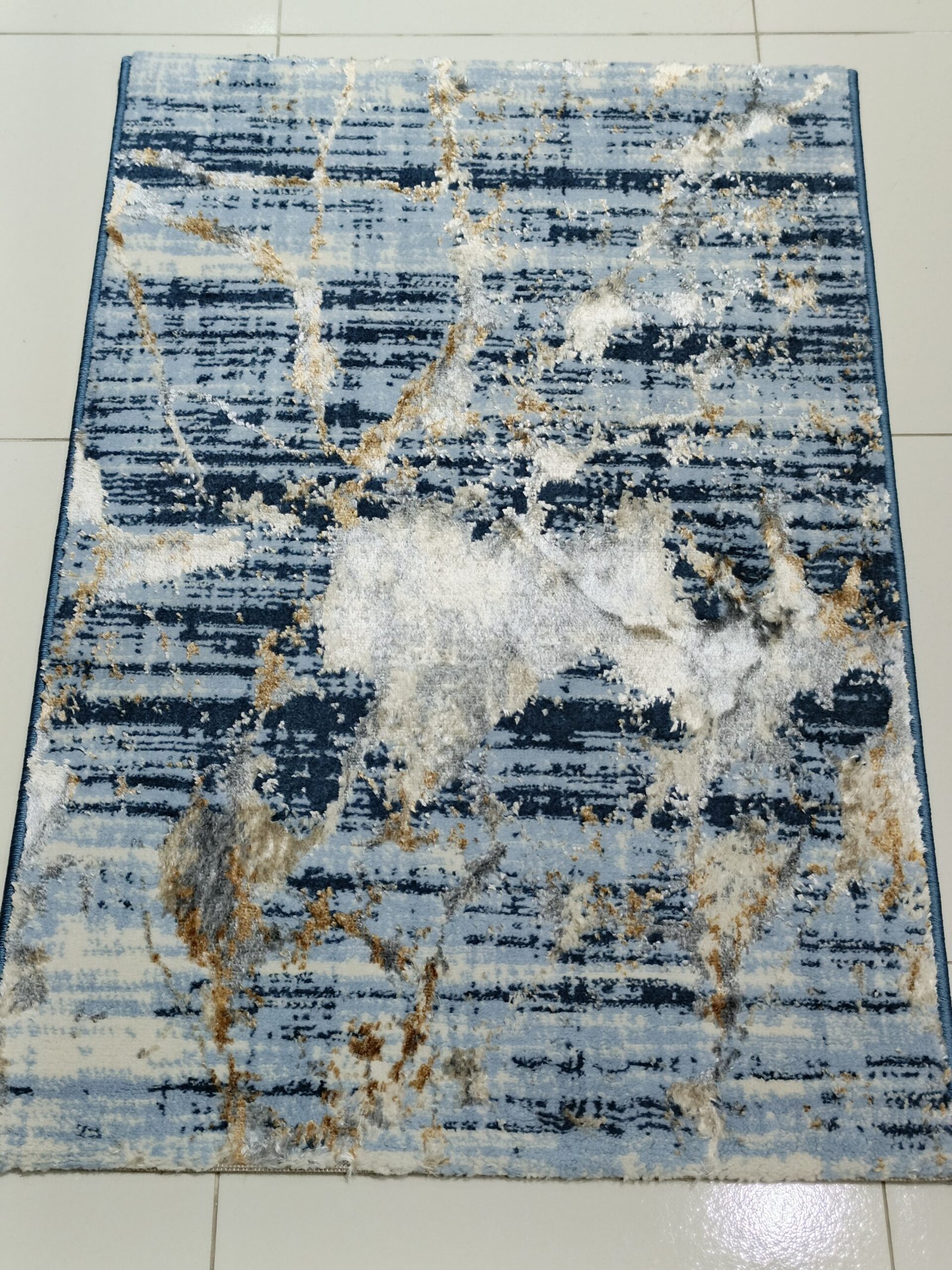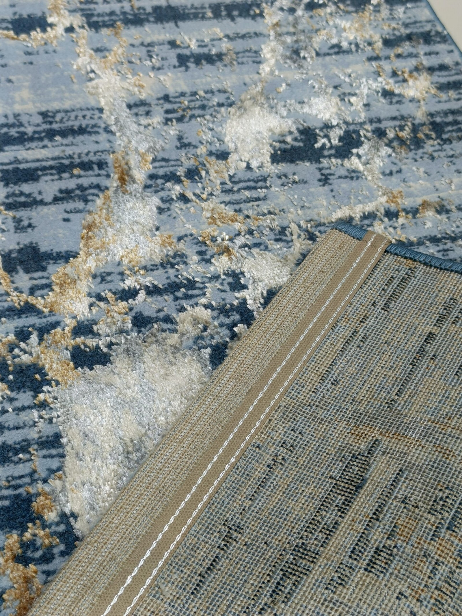 Bring a touch of modern luxury into your home with the Turkish 3D Shiny VIP “Blue Marble” rug.