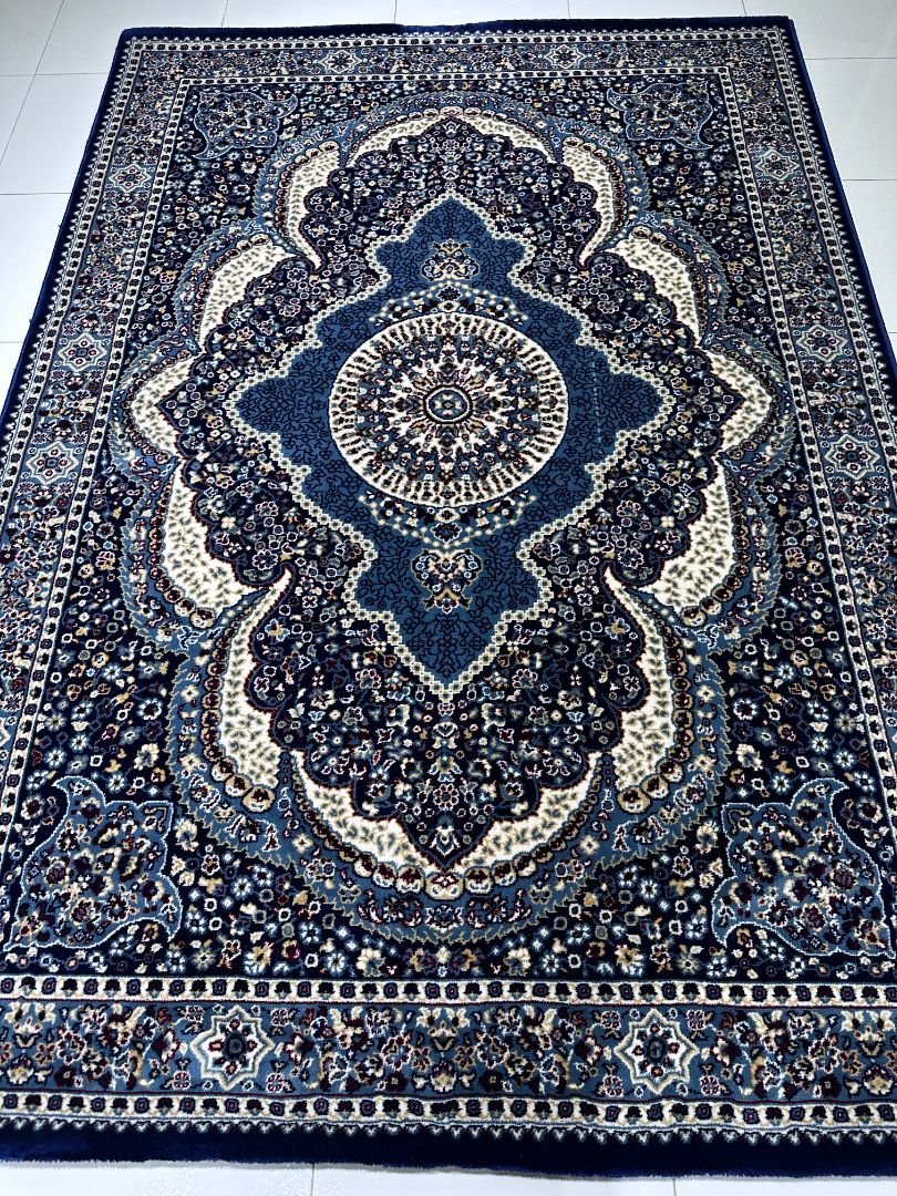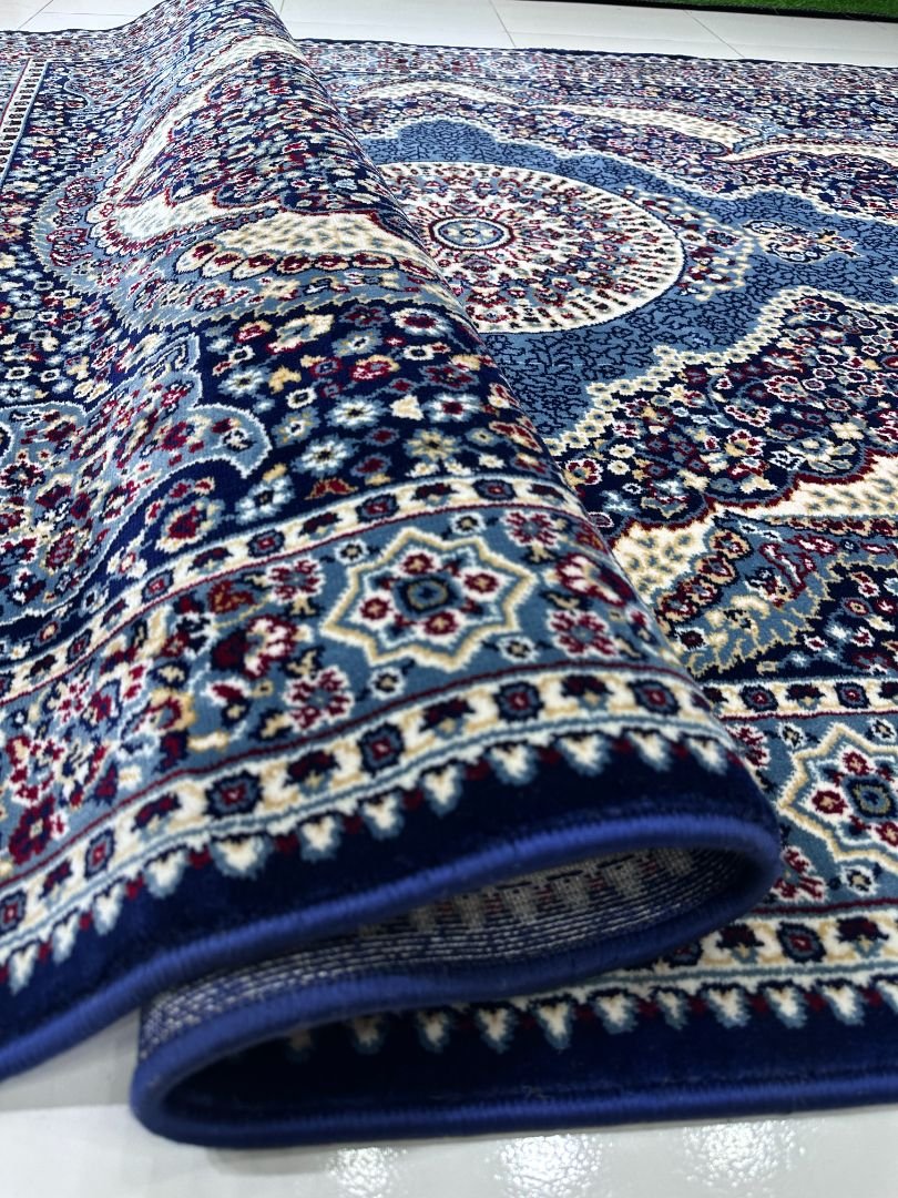 ZARQON Classic Medallion Heavyweight Rug – 5 × 7 ft Turkish-Inspired Blue Premium Carpet (15mm+ Polyester)